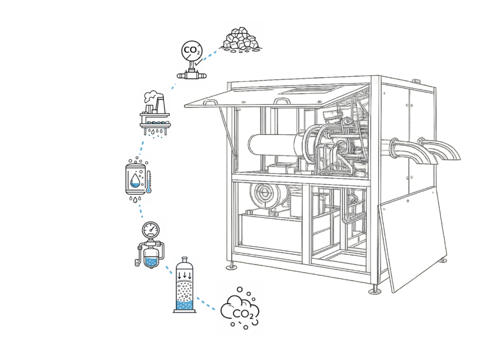Prensas de gelo seco projetadas para a compactação eficiente de CO₂, produzindo pellets e blocos de alta densidade.